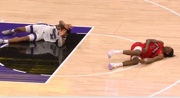 GIF-考德威尔和莫格博卡位对抗倒地,随后拉扯莫格博腿部也倒地,被吹一级恶意